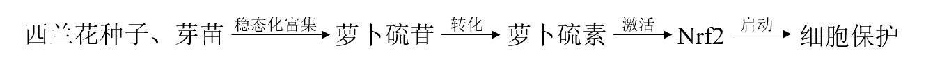 萝卜硫苷属于十字花科蔬菜中天然存在的一种“硫代葡萄糖苷”类化合物。硫代葡萄糖苷经“黑芥子酶”酶解后在体内产生具有生物活性的异硫氰酸酯。这种黑芥子酶也天然存在于其他十字花科蔬菜。
